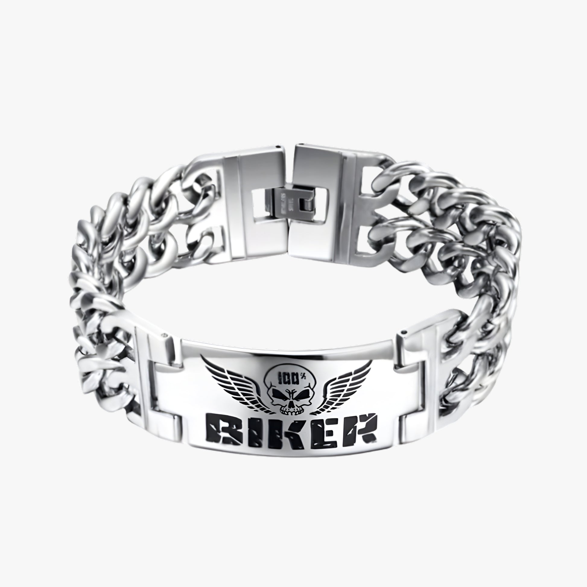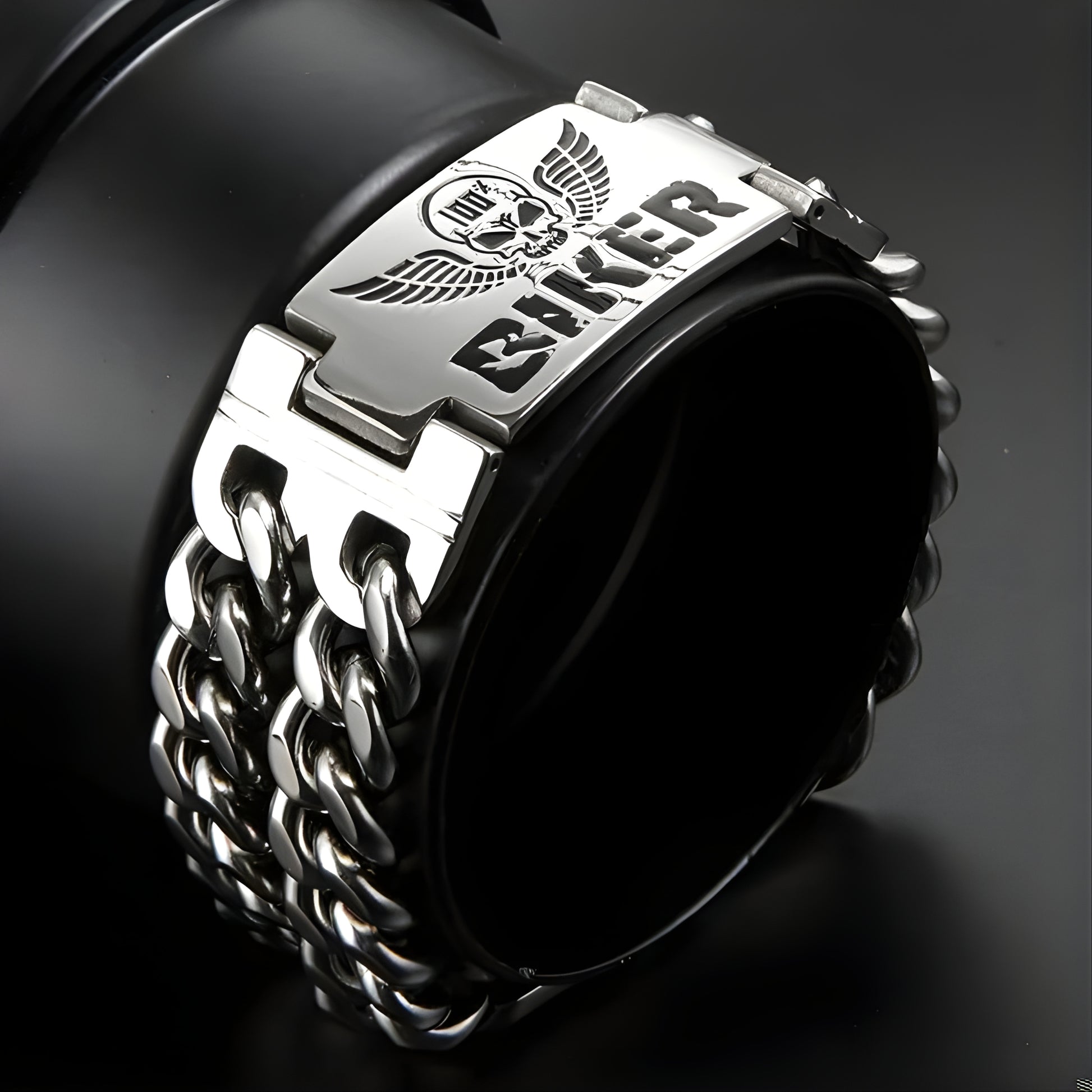 A bold bracelet made from durable stainless steel, featuring a skull and wings design. Comfortable for everyday wear, it’s the perfect accessory for a rugged, confident style.